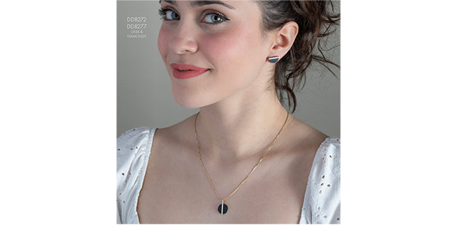 10K Yellow Gold Onyx & Diamond Pendant with 17-18" Chain