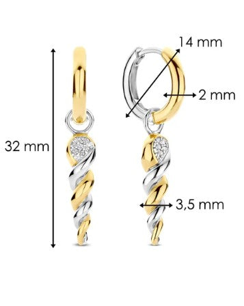 Sterling Silver/18K Gold Plate Huggies with Spiral Drops with CZ