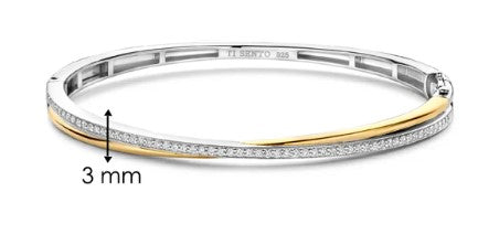 Sterling Silver/18K Gold Plated Twist Bangle with CZ