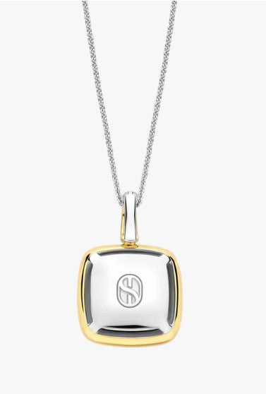 Sterling Silver/18K Yellow Gold Large Cushion Cut Dark Blue Crystal Pendant with 18" Chain